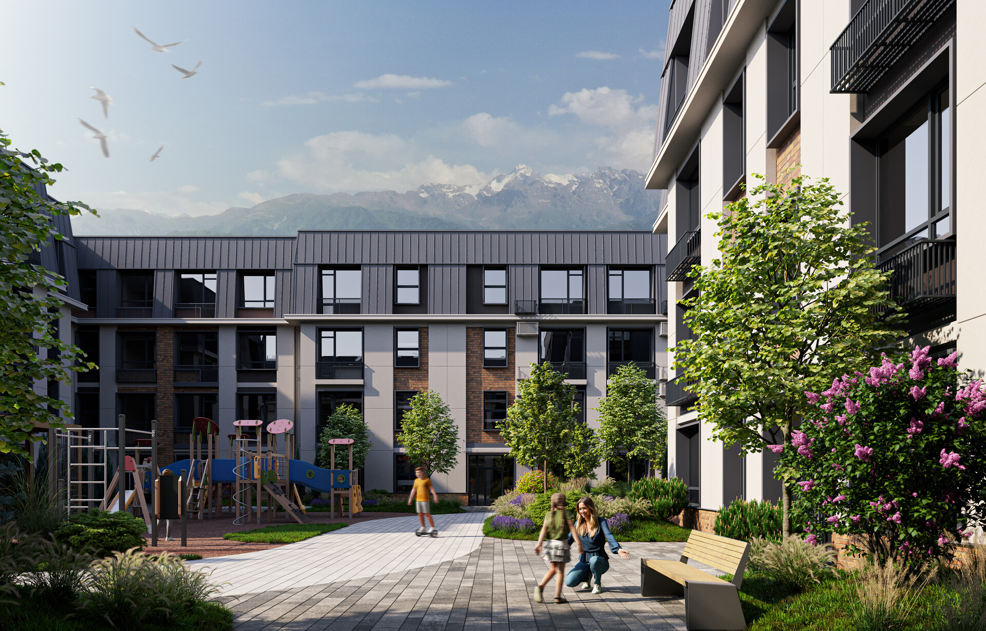 Тұрғын үй кешенінің әрбір бұрышы жайлылық пен белсенді демалысқа деген қамқорлықпен қаныққан. Жабық ауладағы спорт алаңы мен балалар алаңы тұрғындарды ашық аспан астында ойнауға және дене шынықтыруға шақырады.